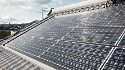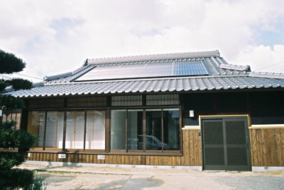 屋根は乾式の和瓦で葺き替え。太陽光発電パネルを設置。外壁はしぶき板を張替え、漆喰を塗り替える。