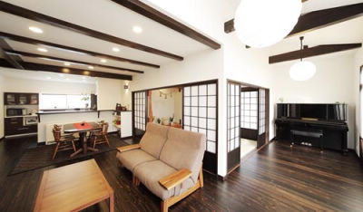間取り変更で実現した、古民家風の大空間