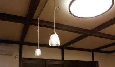 ペンダントライトの柔らかな光が、レトロな雰囲気にぴったり。