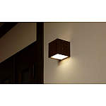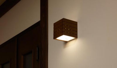 木彫りのブラケットライトを補助照明にして、部屋の雰囲気を統一。