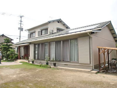 以前の雰囲気を残しつつ、外壁を塗り替えて綺麗になった外観。ペアガラスにすることで機密性、断熱性を高めることができます。太陽光発電3.45kW搭載。節電意識が高まり光熱費も削減できた。