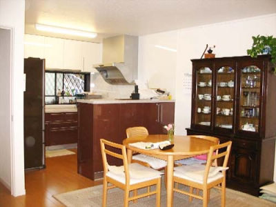 キッチンはIHクッキングヒーター・清潔を保てる食器洗い乾燥機・製水機フォンテ等設備を充実しました。高さ1150mmのカウンターは間仕切も兼ね、キッチンの雑多を目隠ししてくれます。 リビング側のカウンターの下の開き戸は電話帳・メモ・文具等をしまうのに便利に使っています。