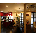 モノトーンのシックなお部屋にモダンな赤いキッチンがとても映えてステキなLDKが完成しました。