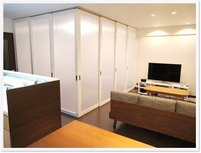 開閉扉を採用したので、空間を調整することができます。開けて使用した場合は、広々と使うことができ、部屋に広がりが感じられます。
