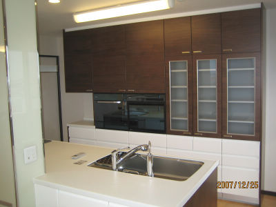 動線を確保しつつ、機能性も収納力もアップしたいというご要望がありました。キッチンとセットで背面にも充分な収納を設置しました。スペースに無駄がなく、料理をしながらコミュニケーションがとれる素敵な空間になりました。