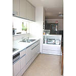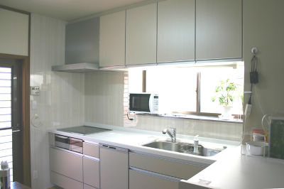 キッチンには食洗機・IHクッキングヒーター・お掃除が簡単なレンジフードを採用し、忙しい奥様にピッタリなキッチンになりました。吊戸棚は背の低い奥様のために、最大限低い位置に設置しました。