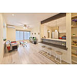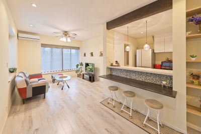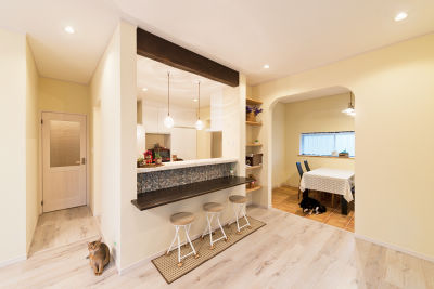 アーチやカウンターがナチュラルなカフェ風空間を演出。