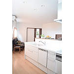 キッチンは対面式の2列型。キッチンからリビングダイニングが見渡せ、家族団らんを感じる事が出来る。