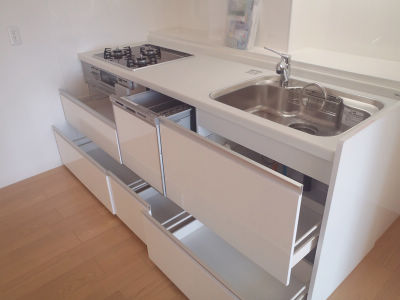 今までは卓上のガスコンロだった為、隙間にごみが入りお掃除が大変そうでした。今回、ビルトインになった事と、天面はお掃除のしやすいクリアカラートップを採用して頂き、これからのお掃除が楽になりそうです♪