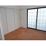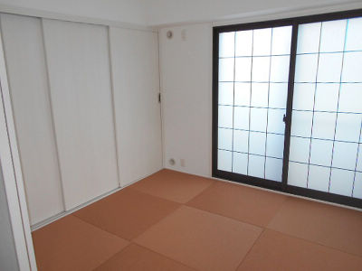 ヘリなし和紙半畳の畳は、洋間の床と同系色でまとめ、壁紙、天井、引き戸を白で統一した効果で部屋全体がとても明るくなり、モダンな和室に変身。