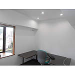 クロスと床を貼り替え、天井にはLEDダウンライトを配置。出窓のカウンター板も新しく変え、明るい部屋になった。