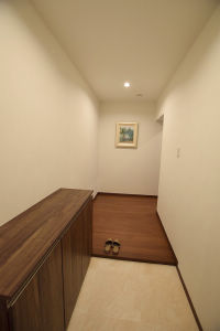 玄関のたたき部分と収納を一新。たたき部分に明るめの色を採用した効果で、玄関が明るくなった。