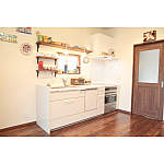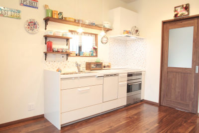 無垢材とアイアン使いの棚を造作し、使い勝手をプラス。