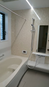 床・壁・浴槽とお手入れのしやすい素材になり、掃除の時間も短縮。ダブルガラスルーバー窓で断熱効果がアップ。