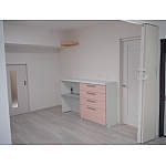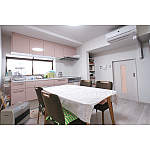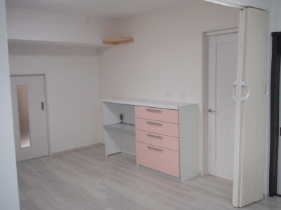 白を基調とした中にピンクのキッチンがとても素敵です。明るい空間となりました。