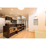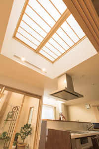 天井のトップライトをいかし、明るいダイニングスペースに。