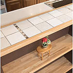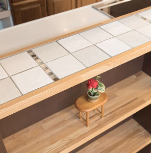 カウンターはオリジナルのタイル張り。インテリアのポイントにも。