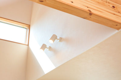 自由に方向を変えられるスポットライト、空間の広さに合わせて左右の幅を違和感なく変えたベースライト、テレビの眩しさを抑え見やすくするブラケットライトなど、吹き抜けライティング計画でシーンに合わせた演出が可能。