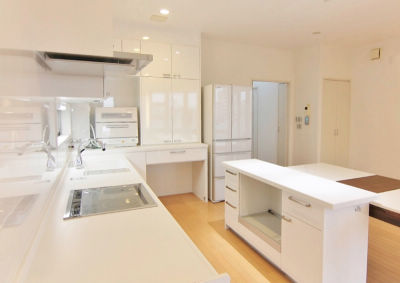 シンク・コンロ側は幅3000mmでとっても広々。キッチン家電も置けるスペースがあります。