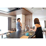 カップボードとリビング上部に間接照明