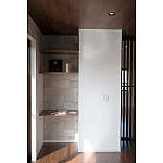ダイニング横のカウンター 無機質なクロスでお部屋のアクセントに