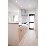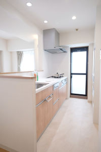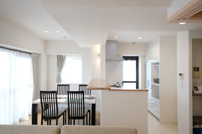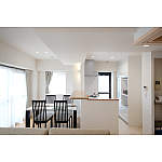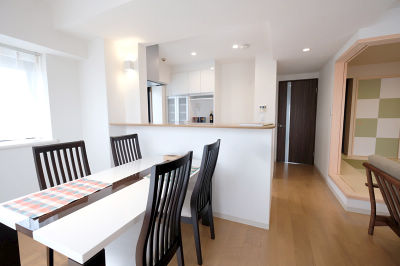 キッチンは吊り戸棚を撤去し、リビングとの繋がりを深めます。