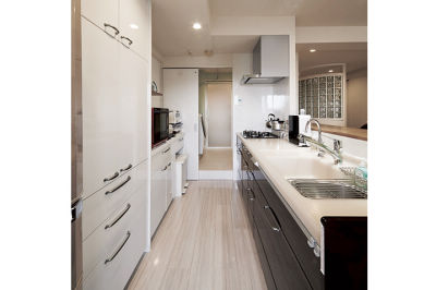 キッチンから洗面所、玄関へと動線をつなげ、使い勝手をアップ。