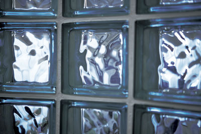 夜はやわらかな明かりが漏れるホビールームのガラスブロックは、奥様のお気に入り。