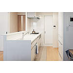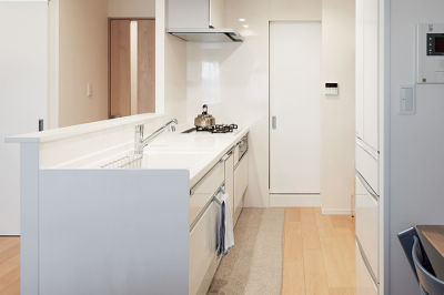 広くて使いやすい、洗面室にもすぐ行ける対面キッチン。