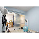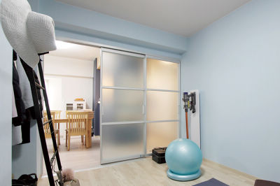 トレーニングルームは窓がないので、LDKの光を取り込めるよう半透明の引き戸を採用して明るく。