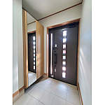 以前の玄関ドアは汎用アルミドアで防犯面が不安でしたが、リフォーム用の玄関ドアへ取替え防犯・断熱性能を向上。お出かけに便利なミラー付きのクロークボックスも設置しました。