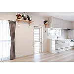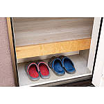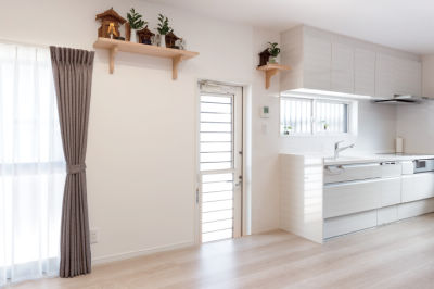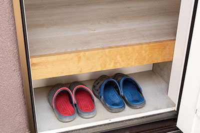 勝手口の土間の上に床を張り、履物が部屋から見えないように工夫しました。
