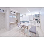 ワイドな高窓で自然光を採り入れながら、空間がさらに明るくなるよう床材は「ベリティス」のホワイトオーク柄をコーディネイト。