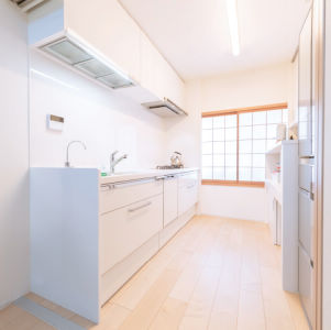 リビング奥から玄関近くに移動したキッチン。買い物帰りの荷物もすぐに運び入れることができ、片付けの負担も軽減されました。