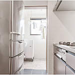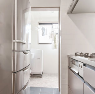 明るいランドリースペース。キッチンやパントリーと直線的に配置されたことで、家事動線がスムーズに。
