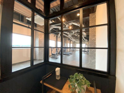 更衣室エリアとジムエリアの境には室内窓を採用し、明るさをキープ。
