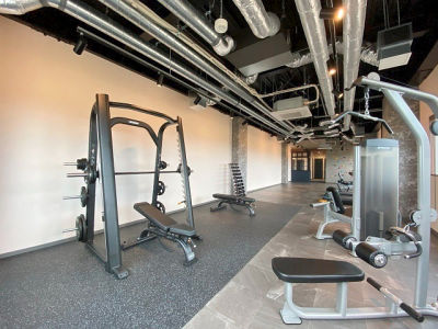 エントランスから室内窓越しにジム内の様子も見渡せます。