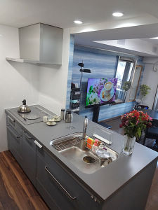 IHコンロ・食器洗い機を採用し、袖壁部分を撤去したことによりキッチン幅を広くなり、安全で便利なキッチンになりました。