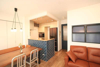 キッチンは対面式に変えて、垂れ壁も外しているので、開放的で明るい空間になりました。