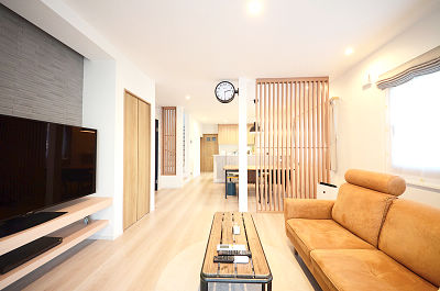 8畳と6畳の和室はリビング・ダイニングへと生まれ変わりました。明るく開放的な空間にインテリア格子を設けることで空間を分けながらも開放感のある広々としたLDKを実現しました。
