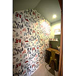 階段下のスペースは奥様のプライベートスペースへと生まれ変わりました。グリーンの壁紙をベースに落ち着きのある空間へ。