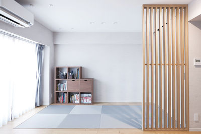 お子様の遊び場になる畳コーナー。スリット格子がLDKとの仕切りになり、目隠しとしても機能します。