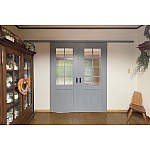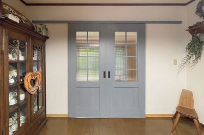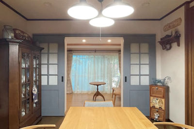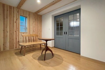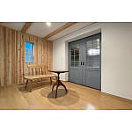 趣味室とLDKを隔てる引き戸はガラス採光タイプにして庭の存在を感じられます。