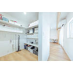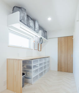 子世帯のユーティリティ。「洗う、干す、たたむ、しまう」の家事すべてがひとつの空間で完結。