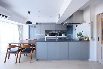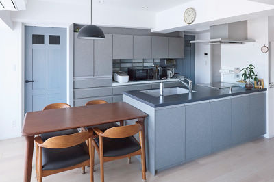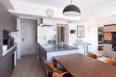 スムーズに家事をこなせるように、キッチンとダイニングテーブルを並べてレイアウト。