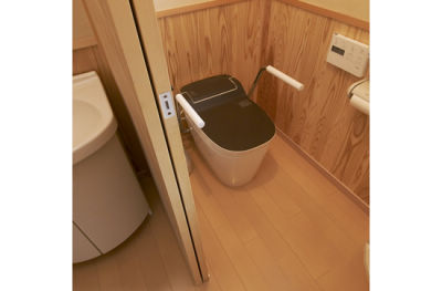 「アームレストが付いてるから、立ち上がるとき助かります」と奥様。車イスで出入りしやすいよう、開口も広く確保しました。