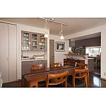 以前は中途半端な広さの小上がりがあり、物置状態になっていたダイニング。小上がりを取り除き、バリアフリーの床にしたことで、以前より広く感じられるように。カップボードもぴったり壁面に収まって、ゆったりとティータイムを楽しまれています。