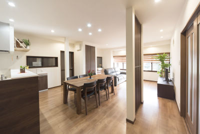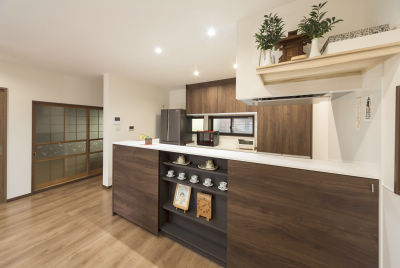昔ながらのお屋敷で玄関と台所が土間にあり履物を履いて移動せねばならず、座敷とは50センチほどの段差があるなど、不便を感じていたS様。お孫さんとの同居をきっかけに、既存のダイニングキッチンと応接間を一体のLDK空間に。土間部分はフローリングの廊下とし移動もスムーズになりました。段差も少なく、三世代が心地よく過ごせる住まいに生まれ変わりました。