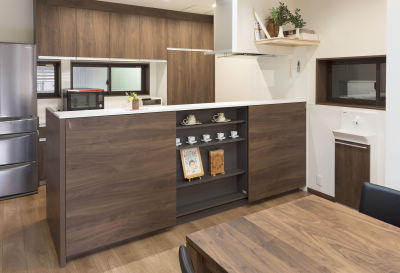 見せる収納としてキッチンまわりをすっきり見せるカップボード。
