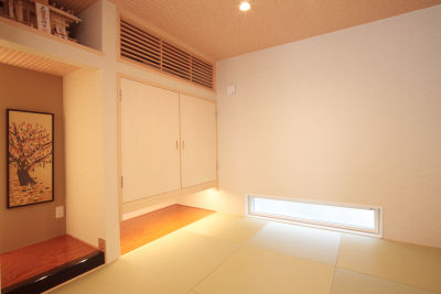 間接照明でモダンに演出された和室は、家族みんなの憩いの場。